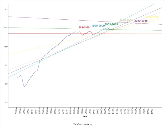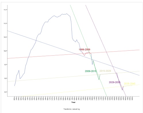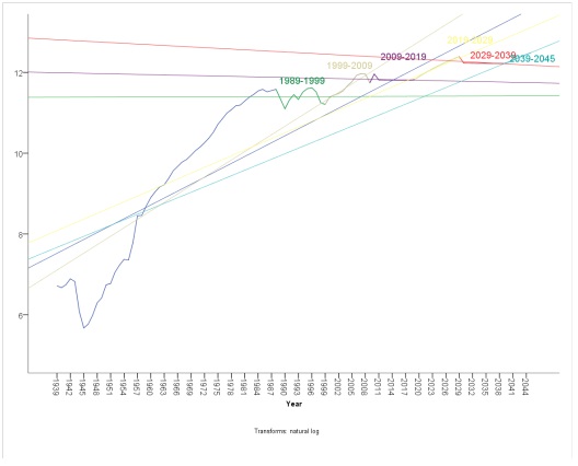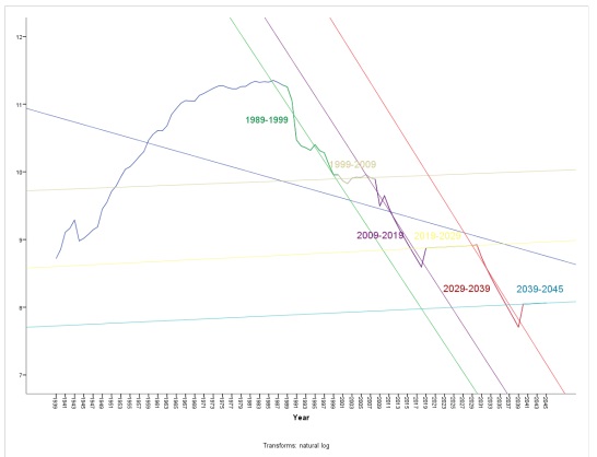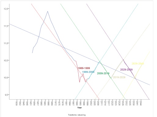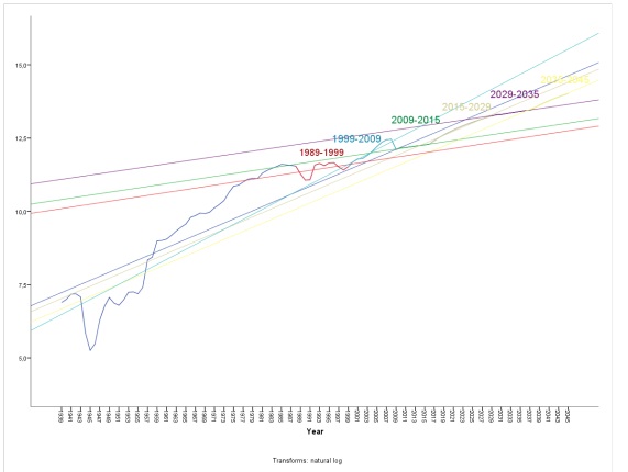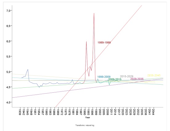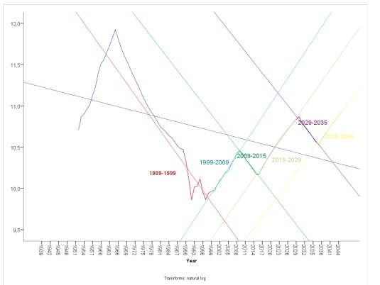 - Извеждане на функция на спад (за 1989-1999) и на растеж