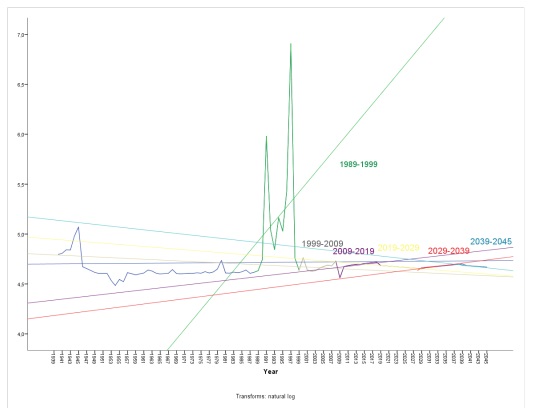което за периода 2035-2045 г. се очаква едно стабилизиране на